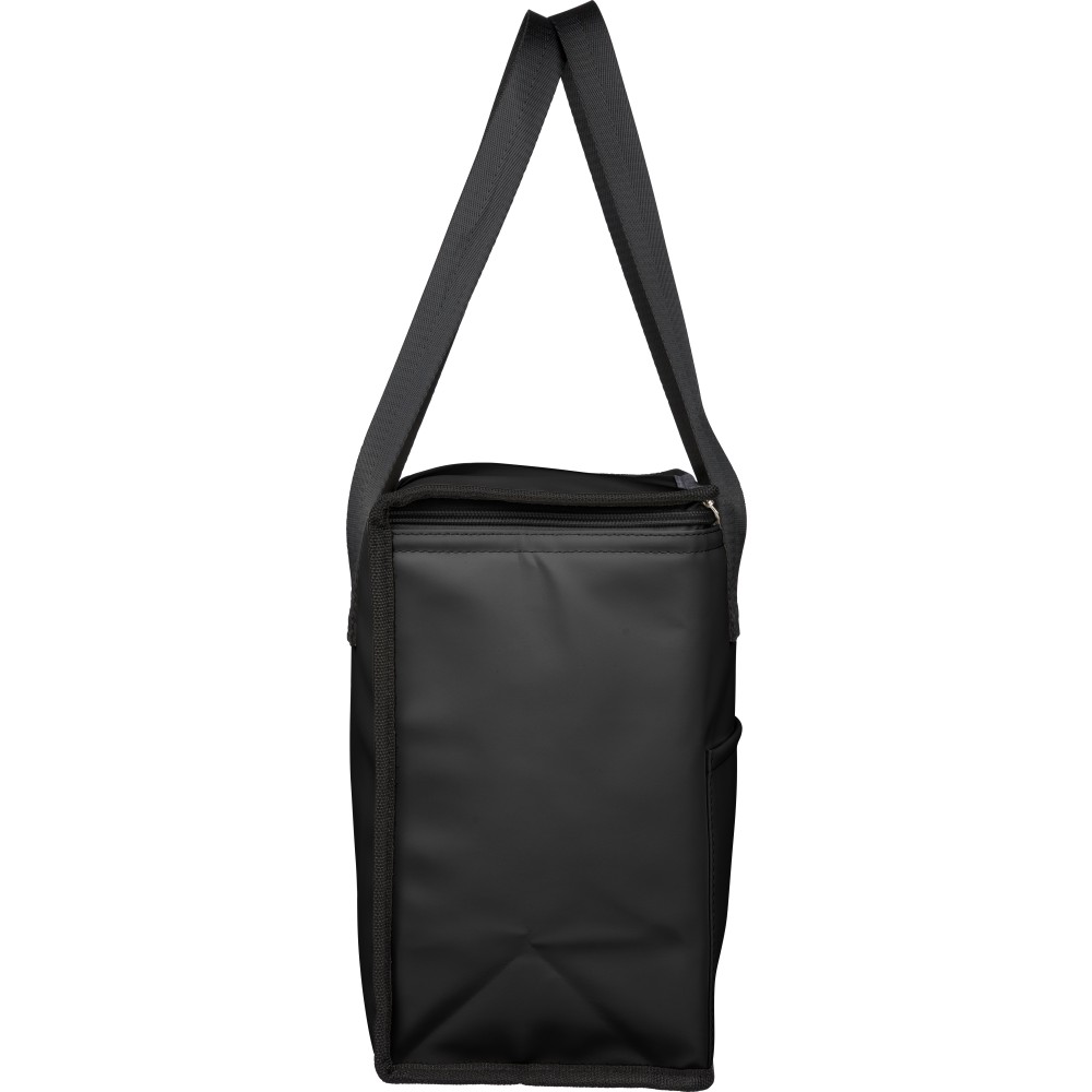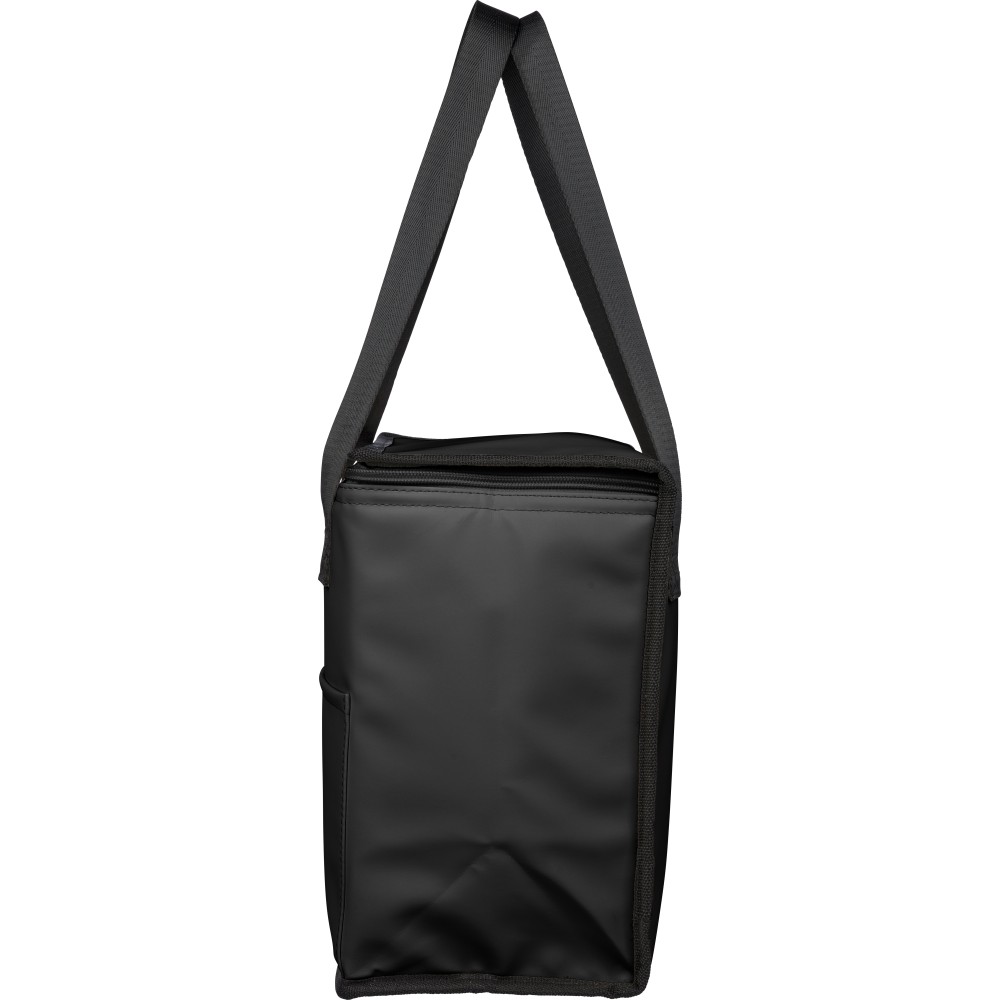Újrahasznosított PU anyagból készült hűtőtáska 9 literes űrtartalommal, 210D újrahasznosított poliészter béléssel. 2,5 × 66 cm méretű hosszú fülekkel és elülső tárolózsebbel rendelkezik. A belső címkén újrahasznosított alapanyagra utaló logó található.
