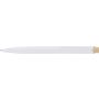 Újrahasznosított ABS-ből készült golyóstoll bambusz nyomógombbal és fehér klippel, digitális nyomtatásra alkalmas kivitelben. A tolltesten fröccsöntés során elhelyezett recycled (újrahasznosított) alapanyagra utaló logó található. Megközelítőleg 600 méter íráshosszúságú, kék színű tollbetéttel.